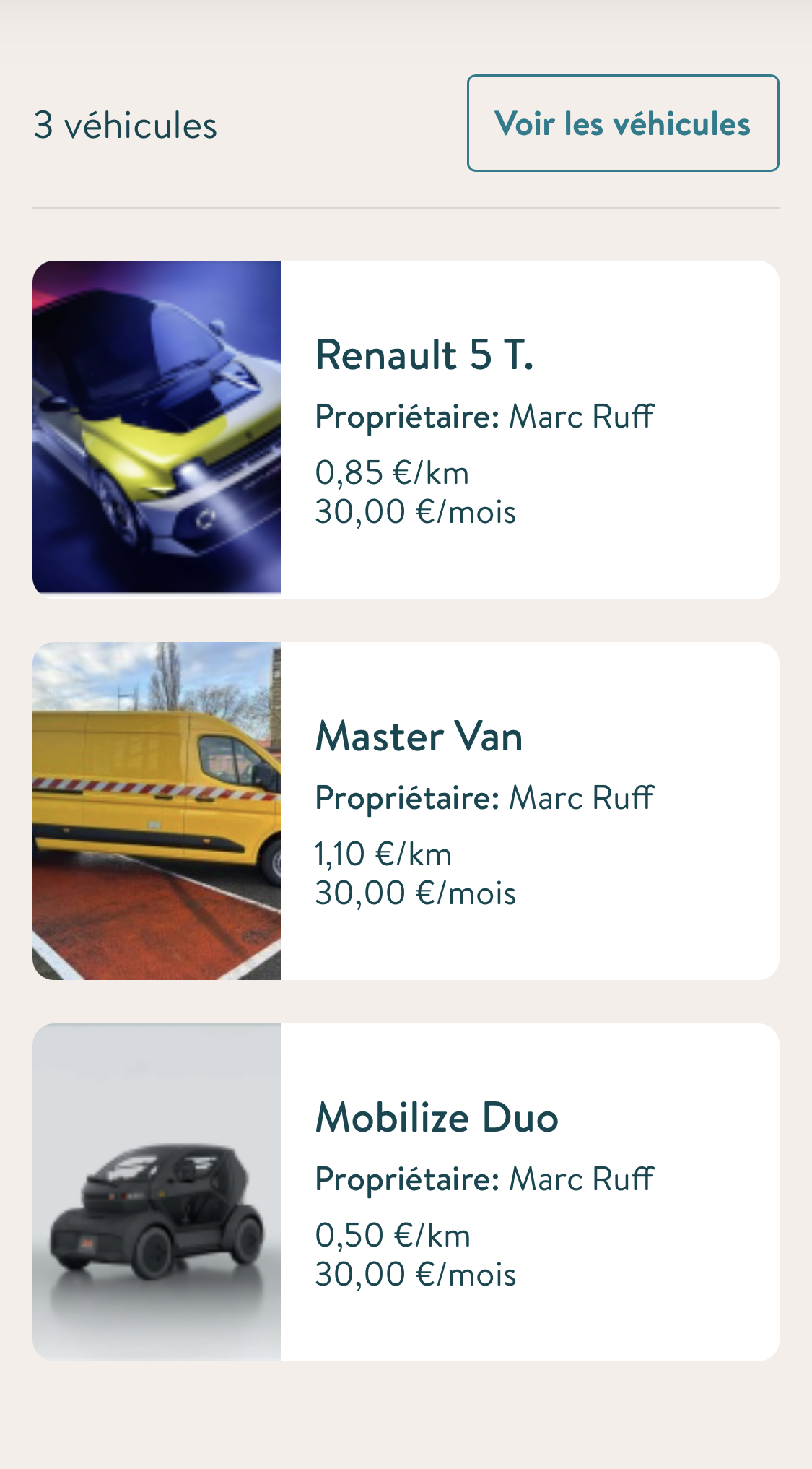 voir les véhicules partagés dans la communauté
